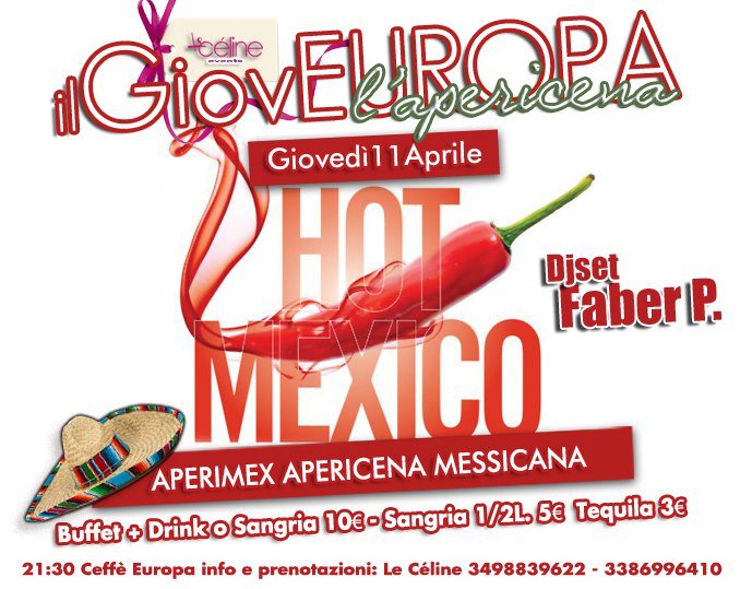 Accompagnati dalla musica del nostro stra-piccante Dj Faber P. e supportati dall’altrettanto piccante staff del Caffè Europa ♥ Le Céline ♥ vi aspettano numerosi ♥ ♥ ♥