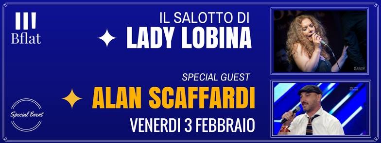 Alan Scaffardi è un cantante emiliano con impronta soul e jazz, vanta innumerevoli collaborazioni con artisti internazionali, e molto apprezzato per la sua costante presenza nel progetto Papik. Conosciuto dal vasto pubblico per la sua partecipazione alla settima edizione di X Factor nella squadra capitanata da Elio, sarà ospite del Salotto di Lady Lobina con la sua eleganza e allegria.