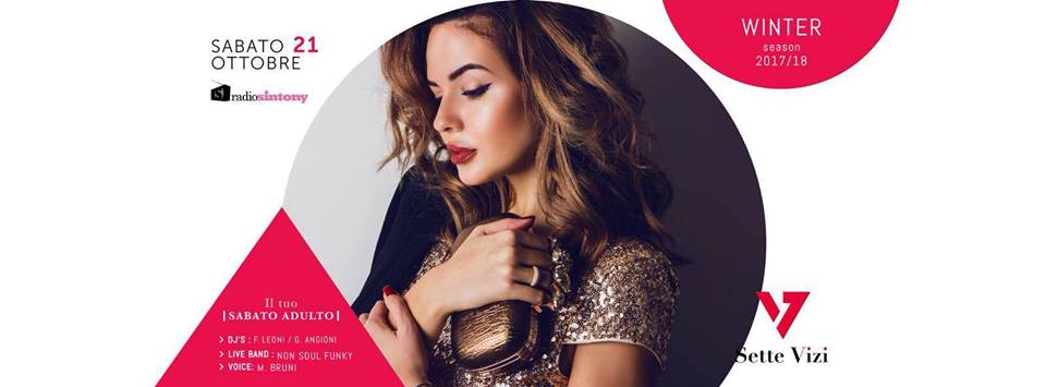 dopo la fantastica inaugurazione da record al SETTE VIZI e il secondo appuntamento::SABATO 21 ottobre:: siete invitati a partecipare al terzo capitolo della saga del “TUO SABATO ADULTO” ….possibilita’ di prenotare con cena a buffet (15€ 2 drink) o menu’ pizza.