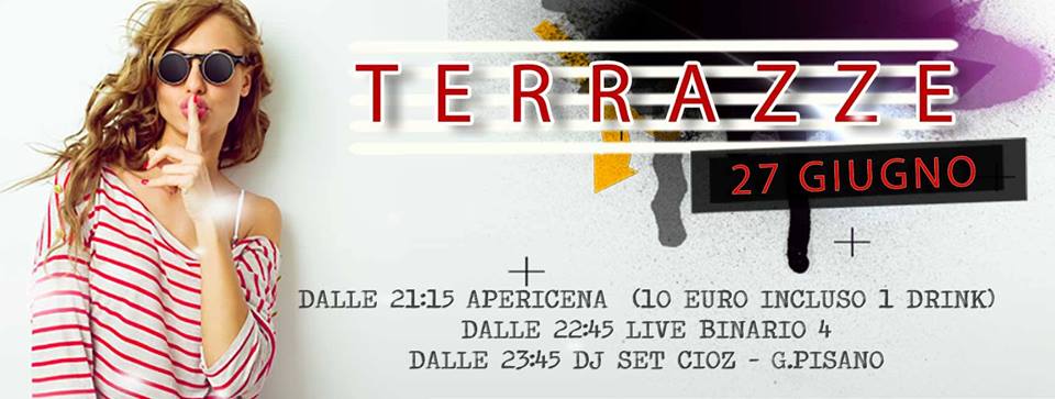 Le Terrazze come si sa è un locale che non ha bisogno di presentazioni,data la sua eccezionale posizione affacciata direttamente sul mare. il programma prevede dalle 21 l’Apericena a 10€ (con 1 drink incluso),dalle 22:45 live music BINARIO 4 “dalle H. 23:45 INGRESSO GRATUITO e dalle h.24:00 Dj Set curato dai Dj’s Cioz & G.Pisano.Come l’anno scorso sarà in funzione un comodo Bus Navetta gratuito, che accompagnerà per tutta la notte le persone dai parcheggi al locale. Dunque è tutto pronto per iniziare un’altra estate indimenticabile!