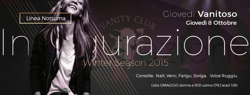 INAUGURAZIONE WINTER SEASON 2015 – GIOVEDI VANITOSO – LINEA NOTTURNA- CAGLIARI – GIOVEDI 8 OTTOBRE 2015
