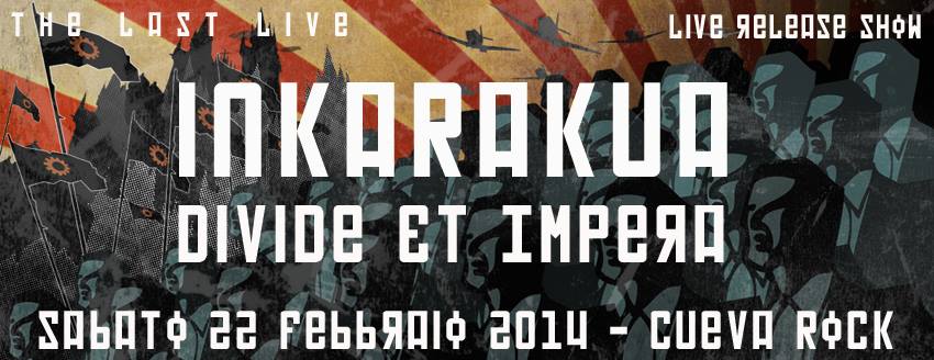 For the last time we will be on stage as INKARAKUA , the group that Cris was the frontman and lead singer for 13 years. And for this occasion we will present the brand new disc “Divide and Conquer ” , whose recordings were completed in March 2013, not even two months before Cris discovers the terrible disease that within a few months took him away .