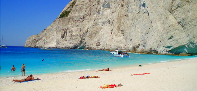 La spiaggia del Relitto a Zante (Grecia) è considerata la spiaggia più bella del mondo. E’ isolata e incastonata da alte pareti rocciose, che la rendono raggiungibile solo dal mare. Composta da ciottoli, sabbia bianca e sassolini, questo luogo incantato è bagnato da un mare che spazia dall’azzurro chiaro al blu elettrico. Al centro della piccola striscia di sabbia bianca si trova il relitto di una barca naufragata qui nel 1983, nel corso degli anni ricoperta in parte dalla sabbia. Con i suoi fantastici tramonti e la protezione naturale delle rocce, la Spiaggia del Relitto è in grado di regalare una appagante sensazione di isolamento e relax, che renderà ogni momento assolutamente indimenticabile. Questa è la spiaggia più unica al mondo. Buon viaggio!
