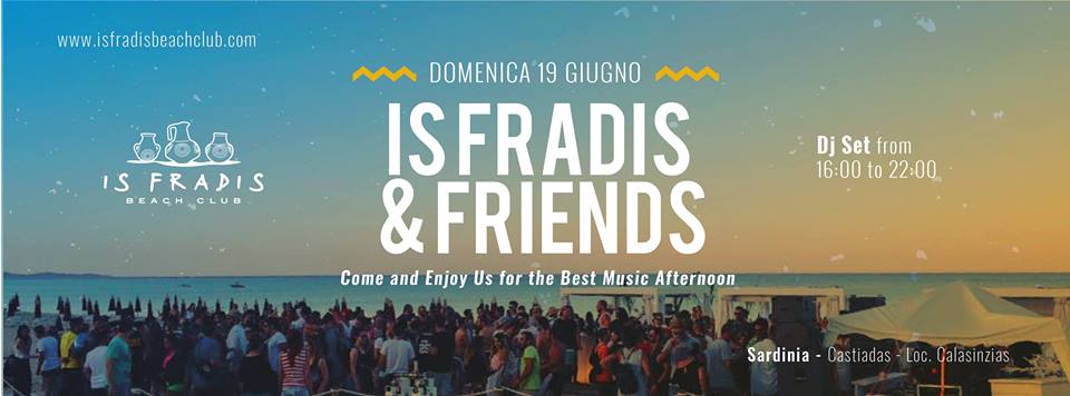 IS FRADIS & FRIENDS – CALA SINZIAS – DOMENICA 19 GIUGNO 2016 Reviewed by admin on . Come and enjoy us for the best music afternoon: it's all about brotherhood and friendship! Dalle 4pm alle 10pm il party degli amici, per gli amici. I DJ, selezi Come and enjoy us for the best music afternoon: it's all about brotherhood and friendship! Dalle 4pm alle 10pm il party degli amici, per gli amici. I DJ, selezi Rating: 0