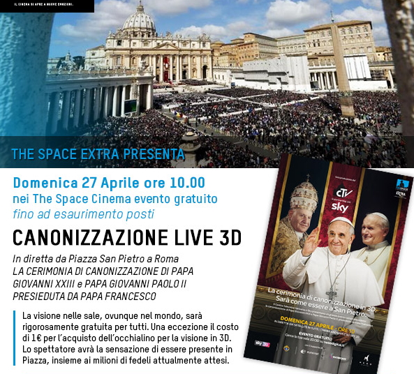 LA CERIMONIA DI CANONIZZAZIONE – THE SPACE CINEMA – QUARTUCCIU e SESTU – DOMENICA 27 APRILE 2014THE CEREMONY CANONIZATION – THE SPACE CINEMA – QUARTUCCIU and SESTU – SUNDAY APRIL 27,2014