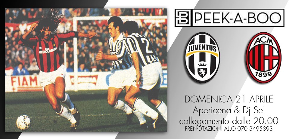 Connection from 20.00 for the big match Juventus AC Milan live by our television screens ::: DINNER 10.00 € (Free Buffet) with a glass of wine or soft drink included :::: Dj set with Piraz & Fanzecco ::: Info & Booking at 0703495393! Do not let it tell …