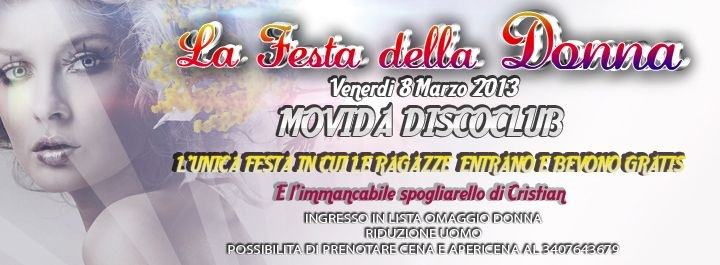 LA FESTA DELLA DONNA – MOVIDA DISCO CLUB – CAGLIARI – VENERDI 8 MARZOWOMEN’S DAY – MOVIDA DISCO CLUB – CAGLIARI – FRIDAY MARCH 8