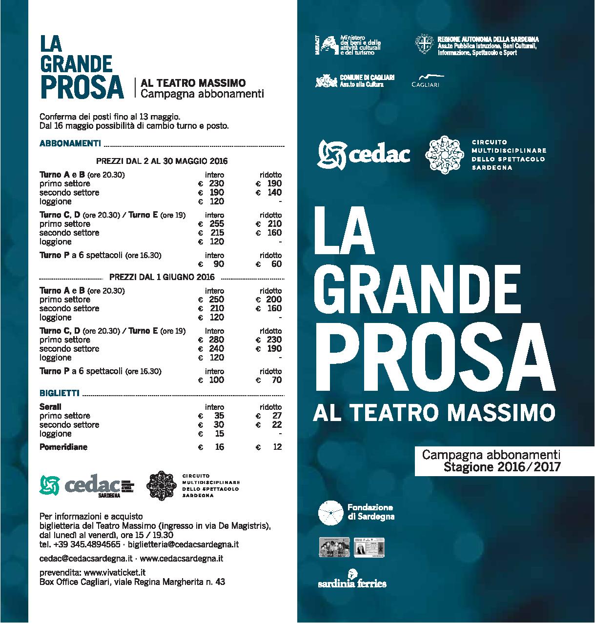 LA GRANDE PROSA DEL TEATRO MASSIMO DI CAGLIARI STAGIONE 2016/2017: INFO, PROGRAMMA E COSTI