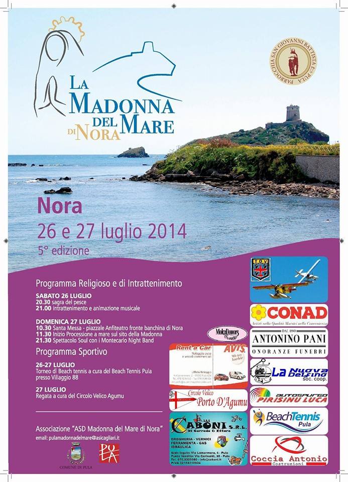 LA MADONNA DEL MARE DI NORA – 26-27 LUGLIO 2014THE LADY OF SEA – NORA – JULY 26 TO 27,2014 Reviewed by admin on . Tradizionale appuntamento con la Madonna del Mare a Nora il 26 e 27 luglio 2014 nella locandina trovate il programma religioso e di intrattenimento.Traditional Tradizionale appuntamento con la Madonna del Mare a Nora il 26 e 27 luglio 2014 nella locandina trovate il programma religioso e di intrattenimento.Traditional Rating: 0