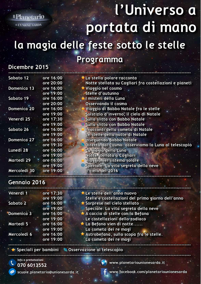CALENDARIO EVENTI DEL PLANETARIO DI CAGLIARI – DICEMBRE 2015/GENNAIO 2016