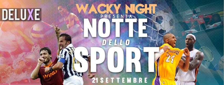 nottesport✌ Settembre è il mese in cui tutto rinizia: scuola e attività sportive. A poco più di una settimana dall’inizio della scuola Wacky Night torna per farvi vivere per un paio d’ore gli attimi felici di festa che hanno accompagnato la vostra estate, e torna proponendovi una serata movimentata, interamente dedicata allo sport .