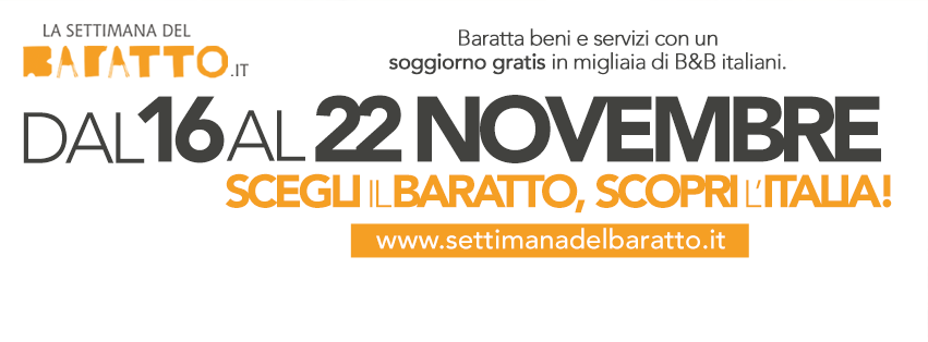 LA SETTIMANA DEL BARATTO – SOGGIORNA GRATIS NEI B&B ITALIANI – 16-22 NOVEMBRE 2015