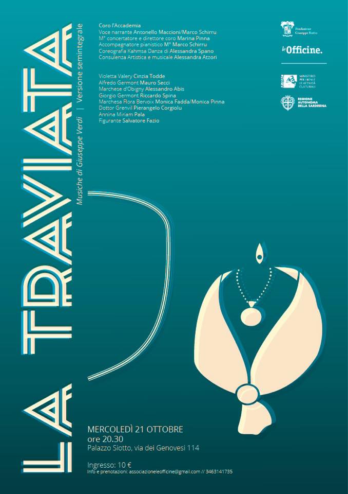 12112165_409612095904878_4824209737370124464_nL’associazione Le Officine e la Fondazione di ricerca “Giuseppe Siotto”, sotto il patrocinio del Ministero per i Beni e le Attività Culturali e il Turismo e l’Assessorato alla Cultura della Regione Autonoma della Sardegna, presentano la Traviata di Giuseppe Verdi in versione semintegrale a Palazzo Siotto mercoledì 21 ottobre alle 20.30.