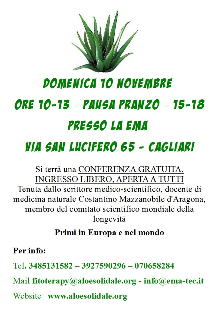 Sunday, November 10, 2013 at the EMA via San Lucifer 65 , prof. Constantine Mazzanobile will hold a free lecture sull’Aloe and its properties .