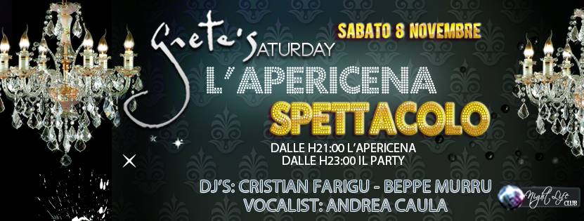 L’APERICENA SPETTACOLO – GRETA’S – CAGLIARI – SABATO 8 NOVEMBRE 2014THE APERIDINNER SPECTACLE – GRETA’S – CAGLIARI – SATURDAY NOVEMBER 8,2014