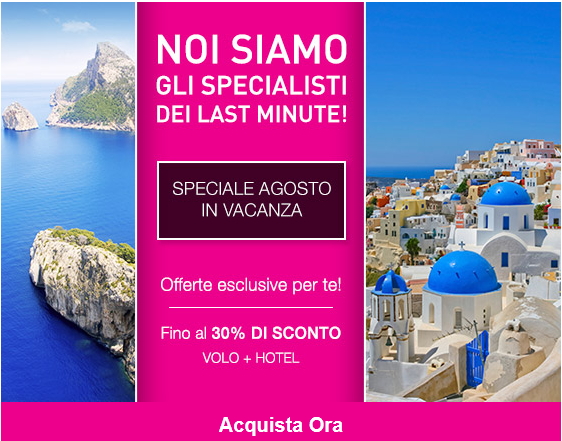 LASTMINUTE DI AGOSTO: VOLO+HOTEL FINO AL 30% SCONTOAUGUST LASTMINUTE: FLY+HOTEL SAVE 30% OFF