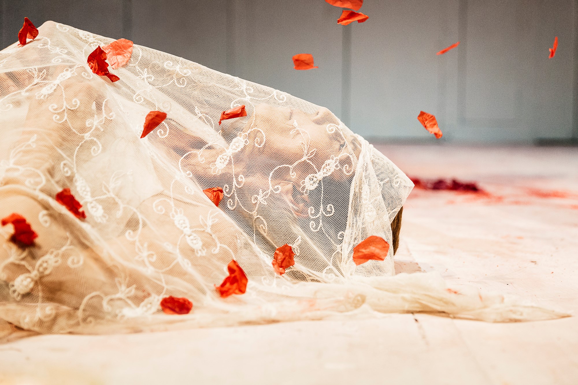 La struttura dello spettacolo è quella di un labirinto in cui si passa attraverso una storia e ci si ritrova in altre storie, incatenate l’una all’altra come anelli di una catena in un espediente narrativo che è del “teatro nel teatro” ed è presentato a volte in forma continua, a volte rapsodica, costellato di poesie e canti, a costituire un unico arazzo che vuole essere un fiducioso canto alla vita.