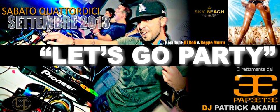 Let’s go Party!!! Vi aspettiamo!!letsgoAfter a season full of guests and surprises, the location of the Sky Beach will be a destination for unique and fun parties. As the beginning of these tours of special events, Saturday will be starring the fun Papeete signed with his official DJ, Patrick Akani.