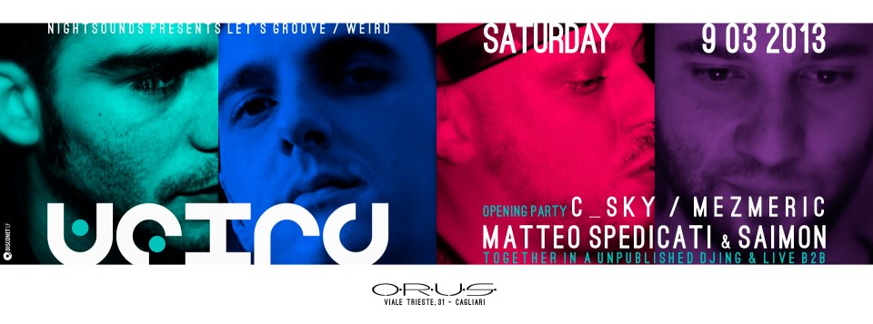 In consolle suoneranno: C_SKY (opening party), Matteo Spedicati VS Saimon, Mezmeric