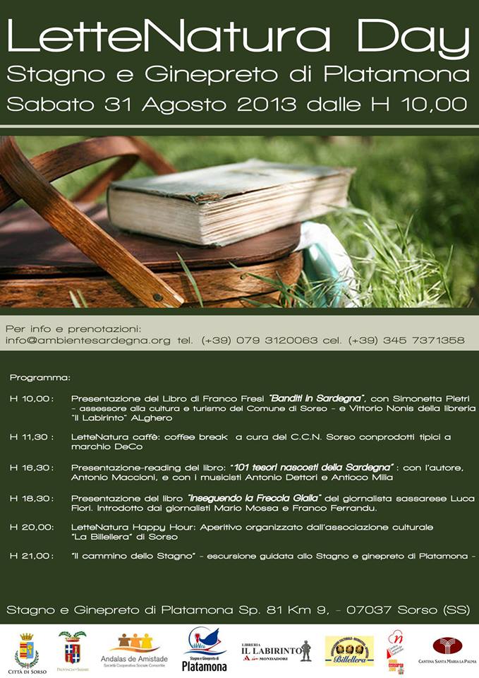 La Cooperativa consortile Andalas De Amistade organizza per il prossimo 31 Agosto 2013 “LetteNatura DAY”, una giornata all’insegna della cultura e del gusto nella rilassante cornice dello Stagno e Ginepreto di Platamona.