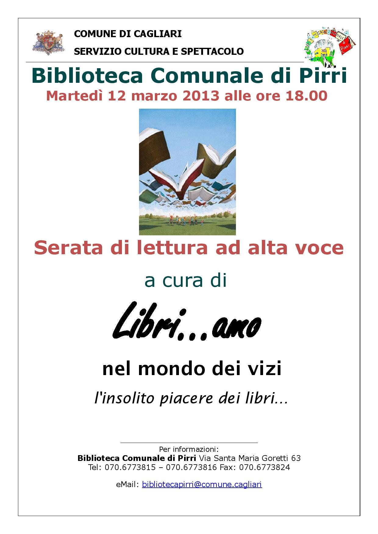 LIBRI…AMO – BIBLIOTECA COMUNALE DI PIRRI – MARTEDI 12 MARZOLIBRI…AMO LIBRARY COMUNAL -PIRRI – TUESDAY MARCH 12