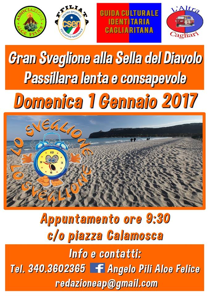 Per chi non ha mangiato tanto e bevuto altrettanto, vi consigliamo per partire bene e meglio nel nascente ANNO 2017, “LO SVEGLIONE ALLA SELLA DEL DIAVOLO” , con una passillara social.Aloe Felice, insieme con L’Altra Cagliari e Aloe Solidale, vi propone un evento social trekking running all’insegnà del benessere fisico e dello sport amatoriale, che verrà organizzato domenica 1 gennaio 2017.