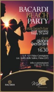 MALI BEACH BAR – BACARDI BEACH PARTY – GOLFO DELLE SALINE (PALAU) – VENERDI 29 GIUGNO