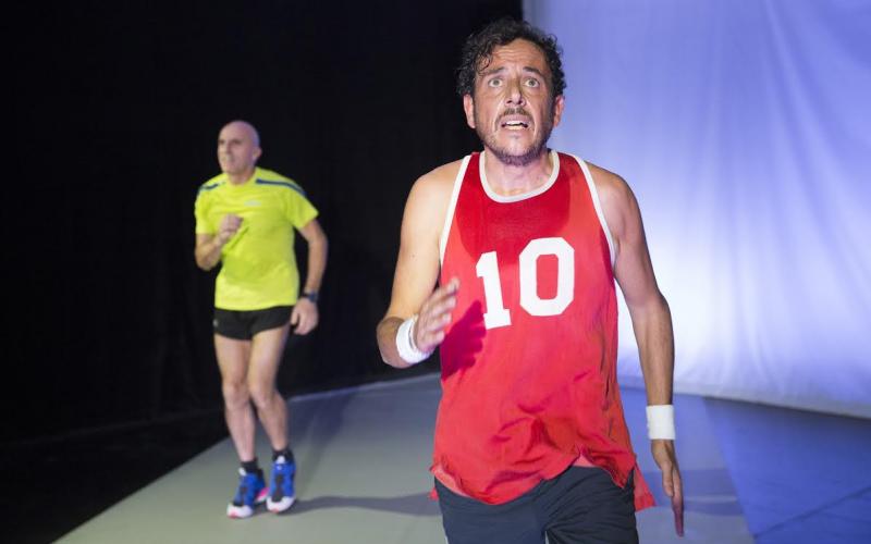 Due ragazzi si allenano per prepararsi alla famosa maratona e corrono, per tutta la pièce, parlando, divagando, scambiandosi considerazioni, ricordi, paure, entusiasmi, gelosie, silenzi, sul ritmo di quella corsa. Sport, amicizia e la maratona come sfida, come progetto forse irrealizzabile, come metafora.