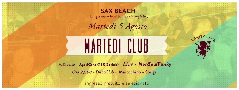 MARTEDI CLUB – SAX BEACH – QUARTU S.ELENA- MARTEDI 5 AGOSTO 2014TUESDAY CLUB – SAX BEACH – QUARTU S.ELENA – TUESDAY AUGUST 5,2014
