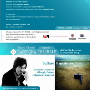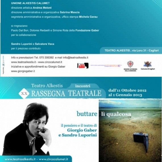 The main purpose of “Meetings 2012″ is to analyze and disseminate from different points of view, thought and play by Giorgio Gaber and Sandro Luporini: through meetings, performances, exhibitions, screenings and testimonies will attempt to locate the origins , the “mission” and the relevance of their artistic career, to ask how the interpreters and contemporary authors can provide continuity and development so that part of understanding and theater. The city of Cagliari, who never have hosted Mr. G. with its shows, through the exhibition “Meeting 2012″ will have an opportunity to know more about the art of theater and celebrate alongside the Fondazione Giorgio Gaber the tenth anniversary of his death. (Andrea Meloni)