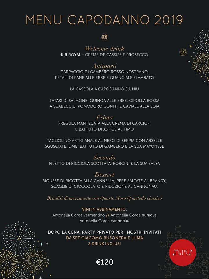 MENU DI CAPODANNO 2019 – RISTORANTE NIU – CAGLIARI – LUNEDI 31 DICEMBRE 2018