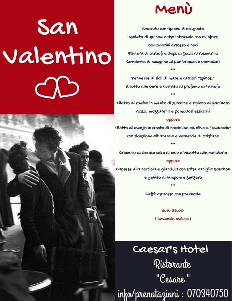 MENU DI SAN VALENTINO – CAESAR’S HOTEL – CAGLIARI – MARTEDI 14 FEBBRAIO 2017