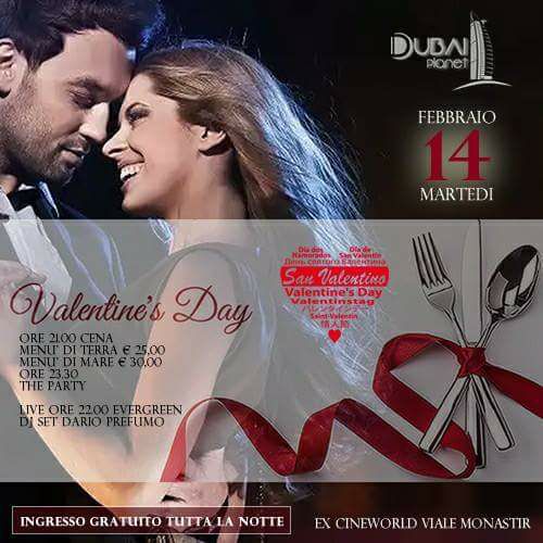 MENU DI SAN VALENTINO – DUBAI PLANET – CAGLIARI – MARTEDI 14 FEBBRAIO 2017