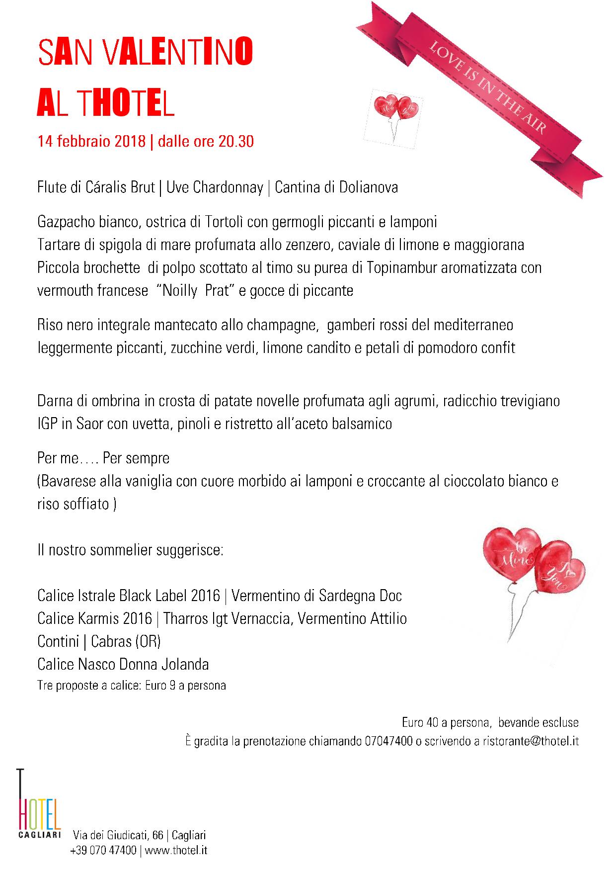 MENU DI SAN VALENTINO – T HOTEL – CAGLIARI – MERCOLEDI 14 FEBBRAIO 2018