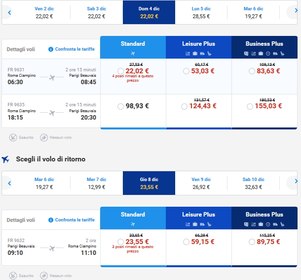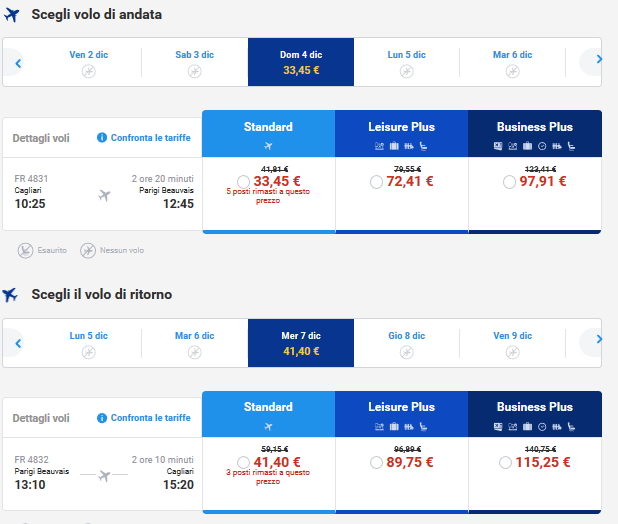 Parigi è raggiungibile da Cagliari con volo diretto Ryanair, cosi come da Bergamo e Roma Ciampino: si attera a Beauvais, un piccolo aeroporto che dista circa 1 ora di pullman da Parigi con approdo a Porte Maillot. Le navette sono gestite da Ryanair e i biglietti si trovano nel sito Ryanair o in loco.