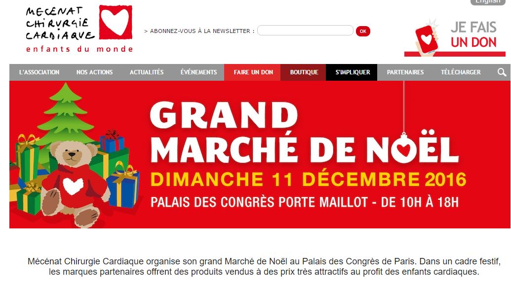 MERCATINO SOLIDALE AL PALAZZO DEI CONGRESSI – PORTE MAILLOT – DOMENICA 11 DICEMBRE 2016
