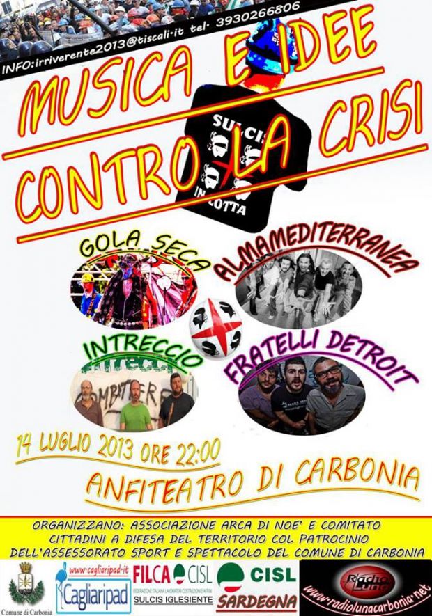 MUSICA E IDEE CONTRO LA CRISI – CARBONIA – DOMENICA 14 LUGLIOMUSIC AND IDEAS AGAINST THE CRISIS – CARBONIA – SUNDAY JULY 14th