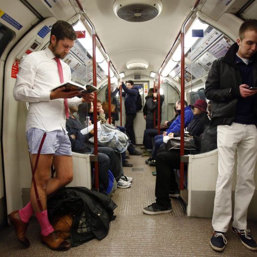 Si chiama “No pants subway ride” e ha avuto luogo ieri,lunedi 13 gennaio 2014, in 60 città del mondo. Tredici anni fa la prima edizione a New York. Pochi semplici regole: atteggiamento serio e disinvolto e ovviamente, non indossare i pantaloni.