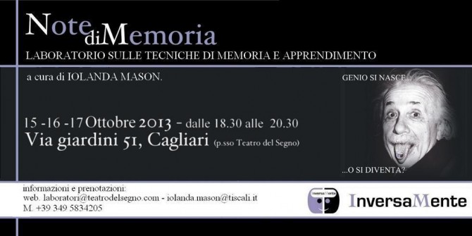 Iolanda Mason esperta in Tecniche di Memoria e Apprendimento Efficace con competenze nel settore della comunicazione e Programmazione Neuro-Linguistica, riconosciuta dalla Society of Neuro-Linguistic Programming di Richard Bandler. Dopo aver conseguito la laurea nel 2007 in Ingegneria per l’ambiente e il territorio inizio a lavorare nel campo delle bonifiche ambientale seguendo cantieri sparsi per tutta la Sardegna. Nel 2011 dopo la conclusione di un grosso cantiere ho il primo approccio con la PNL (Programmazione Neuro Linguistica) e con le tecniche di memoria, decidendo così l’anno seguente, di andare a Treviso per frequentare il Practitioner in PNL, presso la prestigiosa soc. Ekis, e il corso Learning Skill imparando le più avanzate metodologie di apprendimento, tecniche di memoria, tecniche di rilassamento e di concentrazione e le più evolute tecniche di lettura rapida. Partono così una serie di laboratori e corsi rivolti a tutti coloro che hanno la necessità di aggiornarsi in continuazione o di ricordare molte parti a memoria (come registi e attori) offrendo anche coaching individuali.