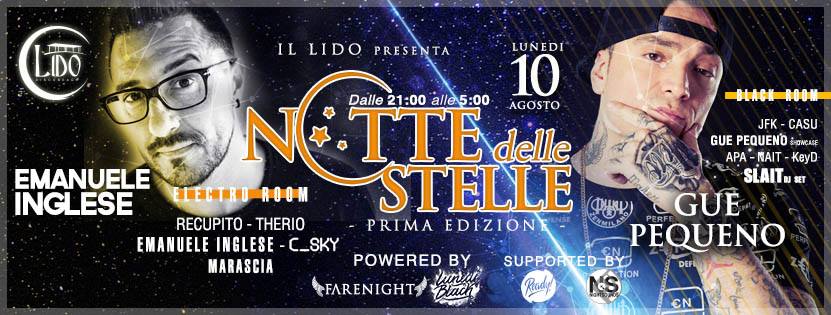 NOTTE DELLE STELLE – SPECIAL GUEST GUE PEQUENO & EMANUELE INGLESE- LIDO DISCO BEACH – CAGLIARI – LUNEDI 10 AGOSTO 2015