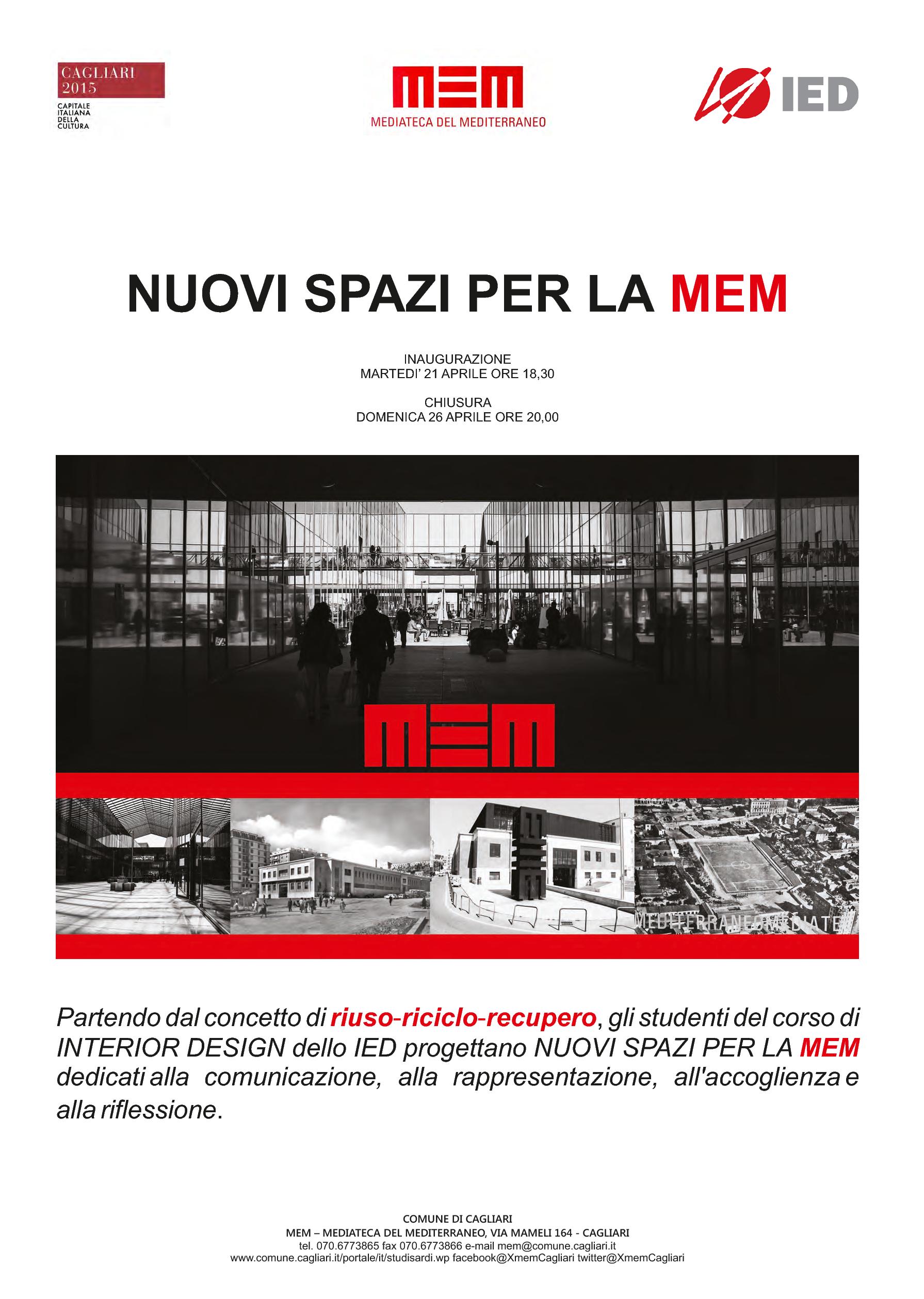 locandina_A3_IED_04r-page-001Proprio nell’anno in cui la città di Cagliari è designata dal Ministero dei Beni Culturali come una delle capitali europee della cultura, IED propone con successo il progetto Nuovi spazi per la MEM, con l’obiettivo di mettere in evidenza la grande potenzialità di un luogo come la Mediateca Del Mediterraneo, forse l’unico edificio a Cagliari, tra gli interventi più recenti, ad avere una caratura a livello europeo.