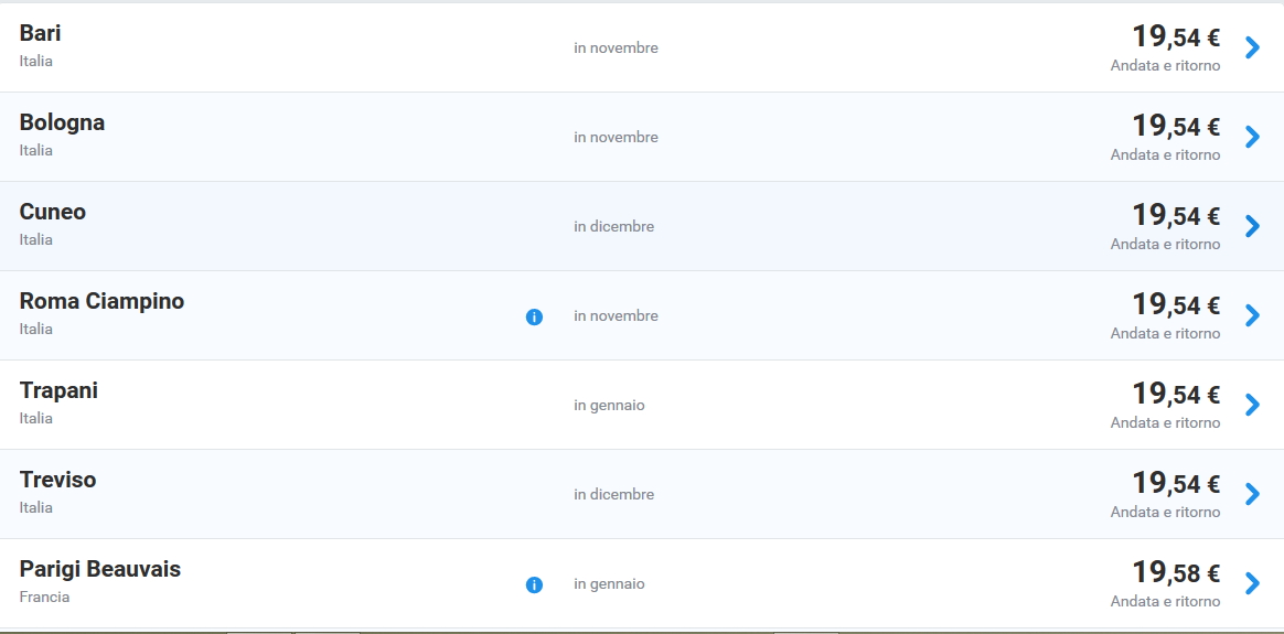 I voli possono essere visualizzati anche come vista affiancata e vista mappa, oltre al classico elenco.