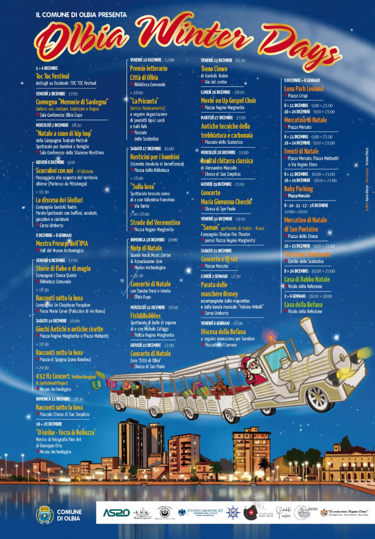 OLBIA WINTER DAYS - 2 DICEMBRE 2016 - 6 GENNAIO 2017 - PROGRAMMA COMPLETO NELLA LOCANDINA SOTTOOLBIA WINTER DAYS - 2 DICEMBRE 2016 - 6 GENNAIO 2017 - PROGRAMMA COMPLETO NELLA LOCANDINA SOTTO
