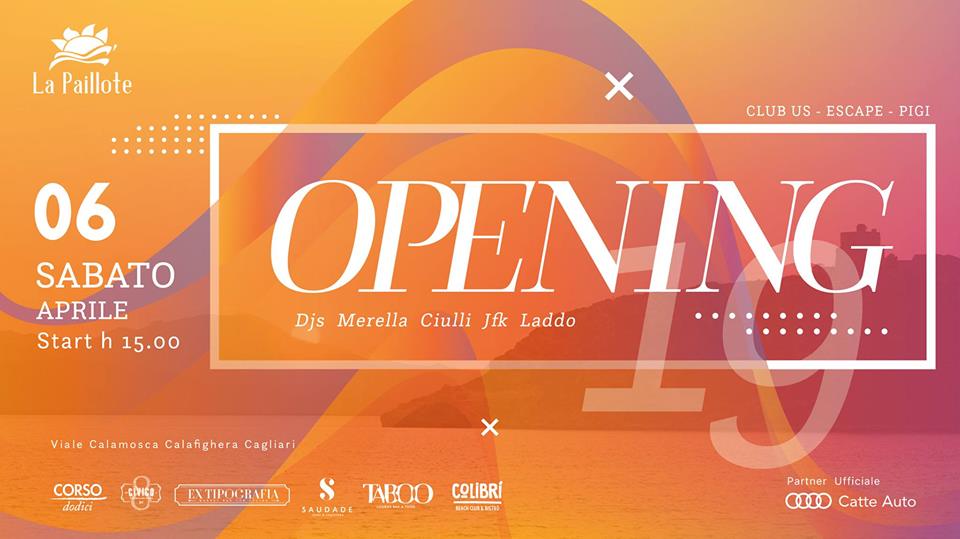 OPENING – LA PAILLOTE – CAGLIARI- SABATO 6 APRILE 2019