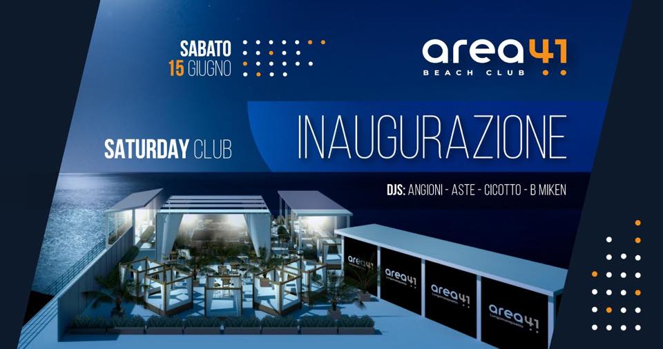 OPENING SATURDAY CLUB – AREA 41 BEACH CLUB – IL LIDO – CAGLIARI – SABATO 15 GIUGNO 2019