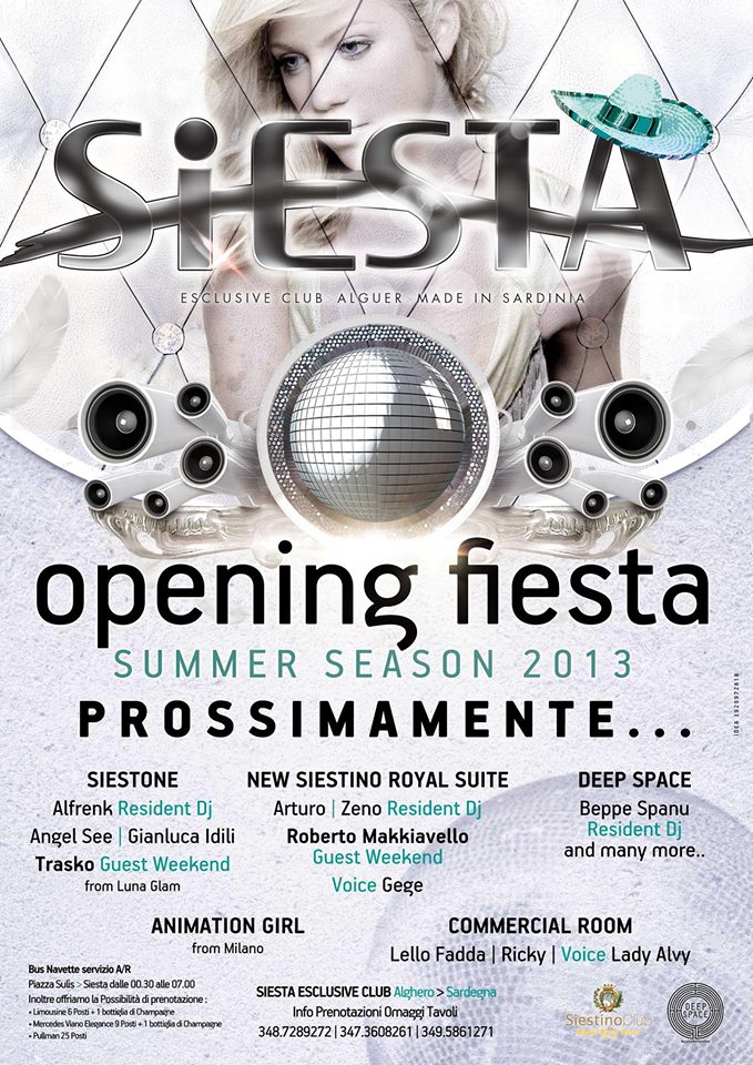 OPENING SEASON SUMMER 2013 – LA SIESTA DISCO – ALGHERO – SABATO 1 GIUGNOOPENING SEASON SUMMER 2013 – LA SIESTA DISCO – ALGHERO – SATURDAY JUNE 1