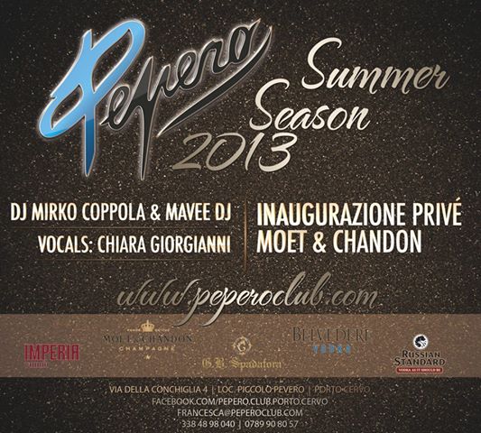 OPENING SUMMER 2013 – PEPERO CLUB – PORTO CERVO – SABATO 13 LUGLIO 2013OPENING SUMMER 2013 – PEPERO CLUB – PORTO CERVO – SATURDAY JULY 13th