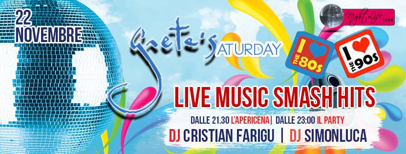 PARTY 80/90 – GRETA’SATURDAY – GRETA’S – CAGLIARI- SABATO 22 NOVEMBRE 2014