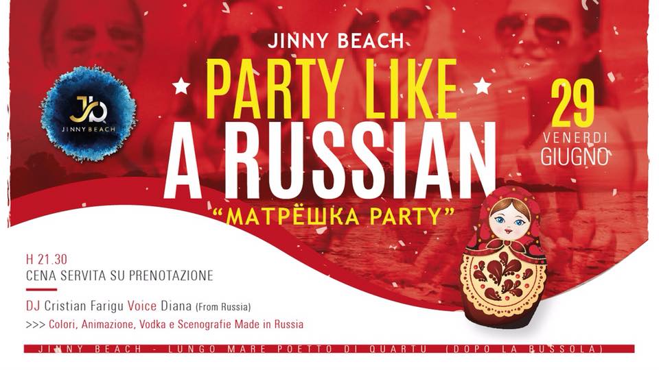 PARTY LIKE A RUSSIAN – JINNY BEACH – QUARTU SANT’ELENA – VENERDI 29 GIUGNO 2018