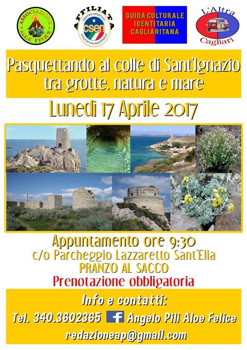 Aloe Felice e l’Altra Cagliari, organizzano per il 17 a Pasquetta, Lunedì dell’Angelo, una gita a pei, al compendio naturalistico di Sant’Ignazio e San Bartolomeo .